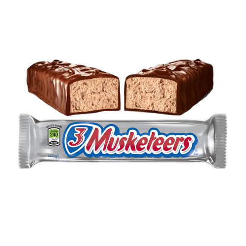 But during the Depression the company had to choose the best flavour to preserve and you guessed it it was the chocolate. Each 3 MUSKETEERS Chocolate Bar is made of a light fluffy whipped chocolate center enrobed in rich milk chocolate. 3 MUSKETEERS Candy is the perfect amount of chocolate fluffy and Musketeer.